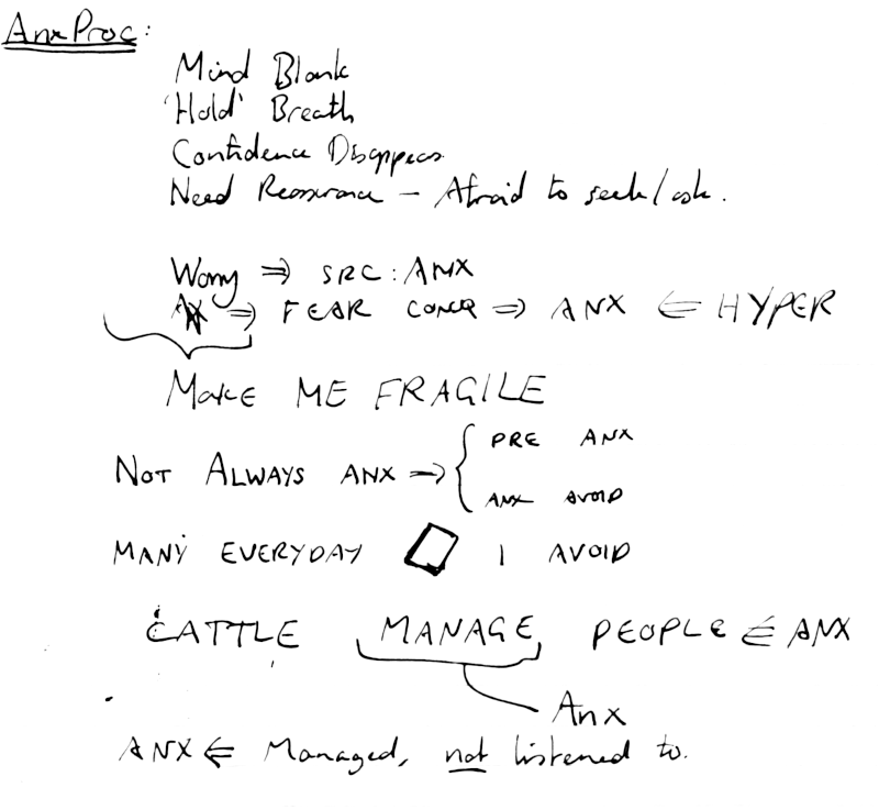 Now I am not always anxious: sometimes I am free of anxiety, sometimes anxiety levels are low enough not to impede me, but then anxiety avoidance starts to kick in. Various paths are pruned, and various choices notched out.